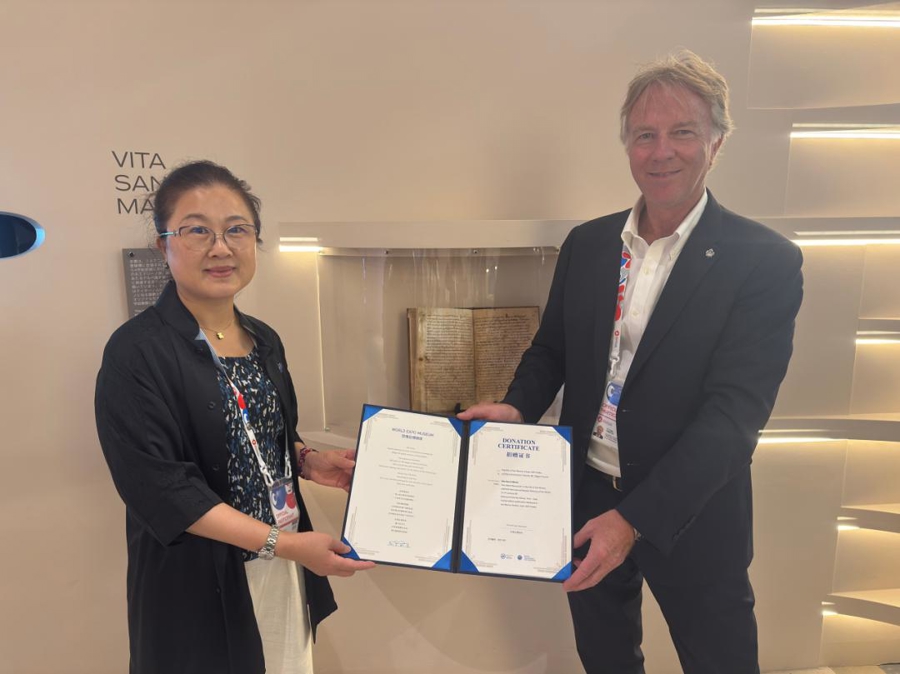 10月,大阪世博会圣马力诺馆向世博会博物馆捐赠珍贵文献——《圣马力诺传》手抄本限量出版本。大阪世博会波兰馆副总代表玛尔塔·热林斯卡女士与伊丽莎·克洛诺夫斯卡-西瓦克女士代表波兰,向世博会博物馆捐赠《波兰国王之冠》盐矿雕塑。