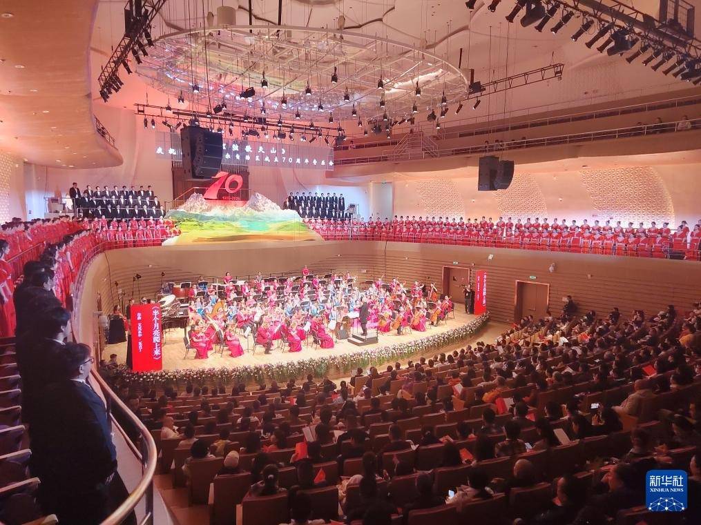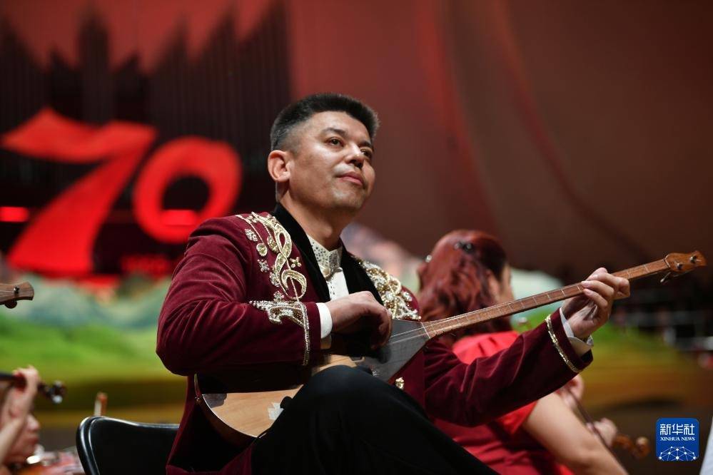 r10月7日晚,《弦歌天山》庆祝新疆维吾尔自治区成立70周年音乐会在乌鲁木齐文化中心音乐厅举行。