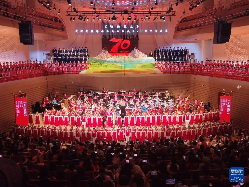 r10月7日,演员在音乐会现场演唱《天山颂歌》。