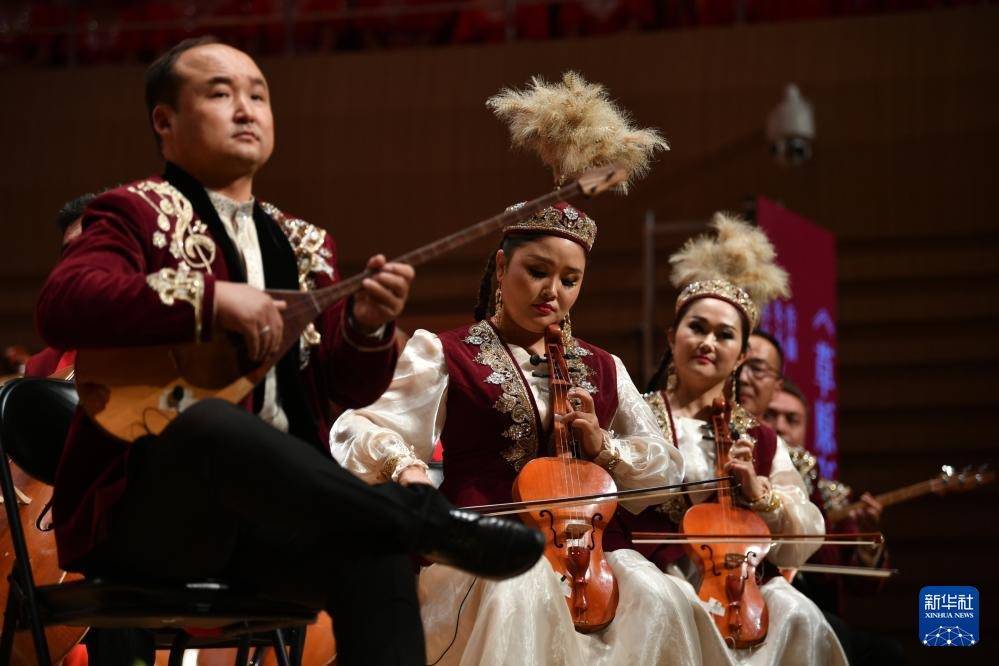 r10月7日,演员在音乐会现场演奏《草原狂想曲》。