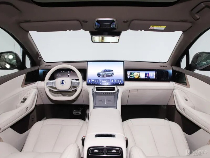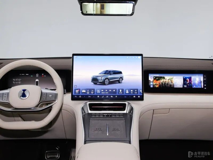 座舱方面,腾势N8L内置的屏幕包括50英寸AR-HUD、13.2寸仪表屏、17.3寸中控屏、13.2寸副驾拓展屏、17.3寸后座舱娱乐屏及流媒体内后视镜等多个屏幕。并配备了4nm制程芯片,降低功耗的同时提升整体的性能,为用户带来更智能的体验。